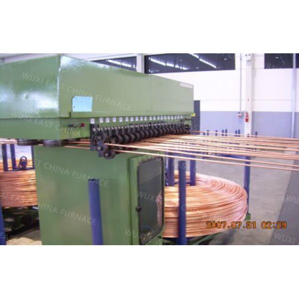Electrolytic copper plate (99.9% copper scraps) is joined in the melting furnaces through the charging device (according to the user needs), (if the raw materials is not 1# red copper, our company can design and install the reverberatory furnace before melting furnaces to remove the copper impurity). The copper plate through W-type inductor into liquid, then flow smoothly from the transition storehouse to the holding furnace, and then is in the steady reduction process through the surface covered with charcoal, at last is crystallized swiftly to the cast copper rod by the crystallizerof the upcast plant by upward copper rod process at the same time, cast copper rod is upward casted intermittently through the two traction roller. The cast copper rod through the hauling machine, and the wheelframe, the speed adjusting gear, then to the automatic winding machine to wind copper rod.